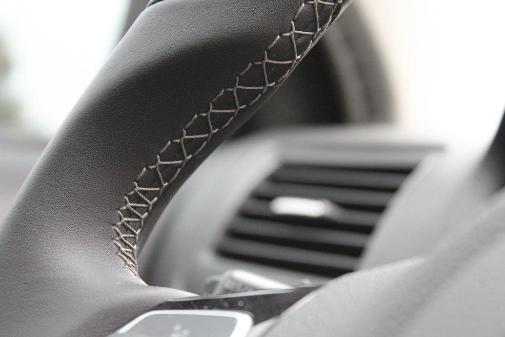 Макро строчка белой ниткой на руле