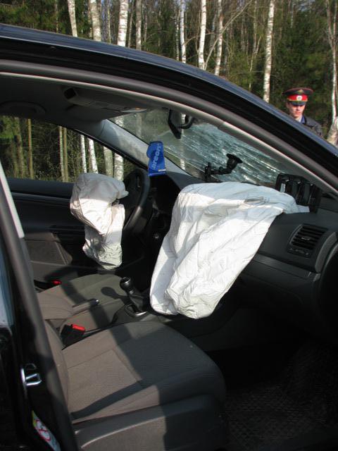 Сработали передние подушки безопасности и передние ремни безопасности.