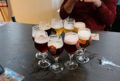 В самом цетре города, неожиданно для себя, мы нашли музей пива: Удивительно, как это мы прошли мимо него в прошлый раз? Однако, на этот раз мы не оплошали. Поднимаемся по ступенькам: Платим по 15 евро и идем на экскурсию. Она осуществляется, в том числе, и на русском языке посредством планшета и наушников: Планшет наводится на метку и в наушниках мы слушаем интересные рассказы о пиве: Комнаты и экспонаты музея: Разные сорта ячменя: Ребята нюхают ингредиенты, из которых делают пиво: Юрка напряженно поглощает информацию: Второй Юрка проверяет, сколько пыли скопилось на телике: А Олька в это время хомячит печеньки : Один из экспонатов музея – карта земли с наклеенными этикетками от пива, которое производится в данной местности. Нетрудно заметить, что Россию в основном представляет пиво «Жигулевское»: Мы прослушали много информации о пиве в музее, но главное знание, которое мы оттуда вынесли, это то, что от пива не толстеют : После музея – дегустация. В цену нашего билета входила возможность попробовать три сорта пива: Меню из сортов пива приклеено на этикетке прямо вот к этой большой бутылке: Налив: Пену смахивают лопаткой: Дальше идем за стол. Подставки под пиво: Надо бухнуть! : После дегустации идем на выход через сувенирный магазин (Конечно, я люблю тебя! А теперь налей мне пива.) После пива, как положено, шлифуемся вафелькой: И едем по Бельгии дальше. А Вам я предлагаю еще немного побродить по улочкам одного из самых красивых городов на земле: